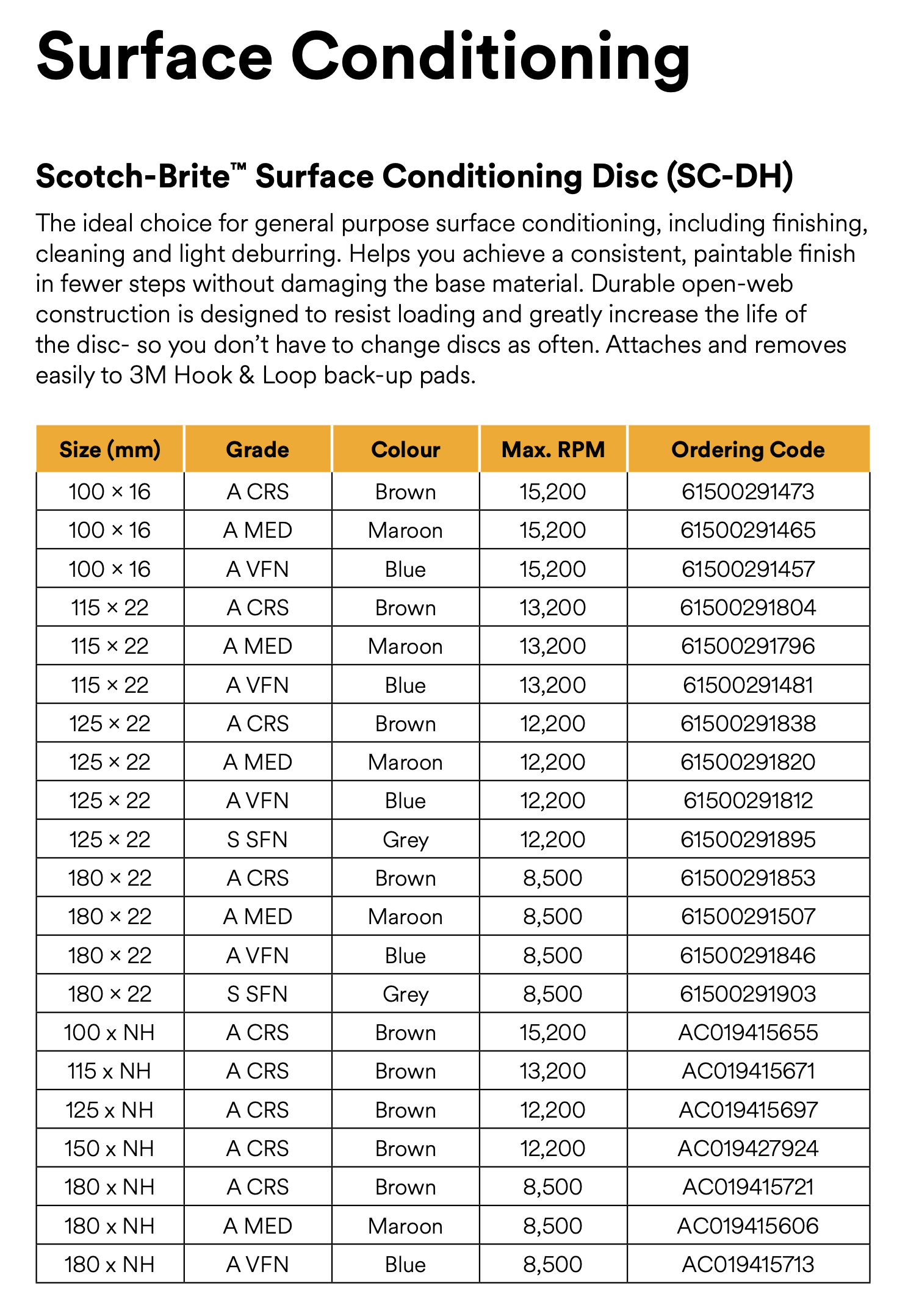 However for grinding applications we have found 3M Scotch-Brite Surface Conditioning Discs (SC-DH) to be a productive option that eliminates the need for lubricating wax in the manufacturing process.